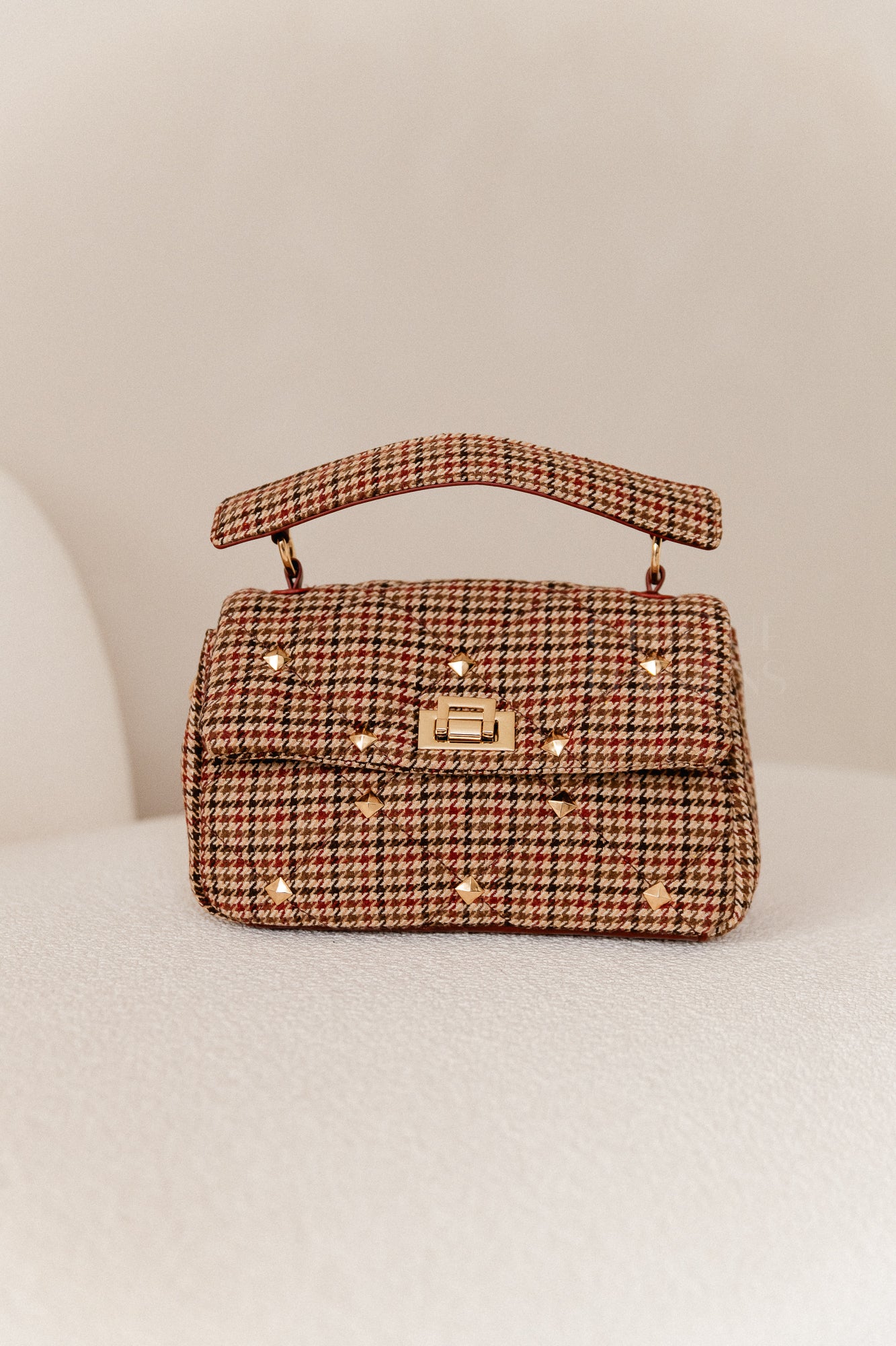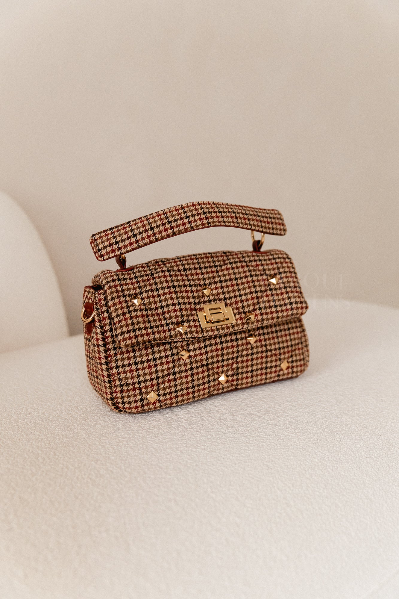 Mooi tasje met klassiek pied-de-poule motief en studs voor een edgy touch. Perfect om je outfit net dat beetje extra te geven.