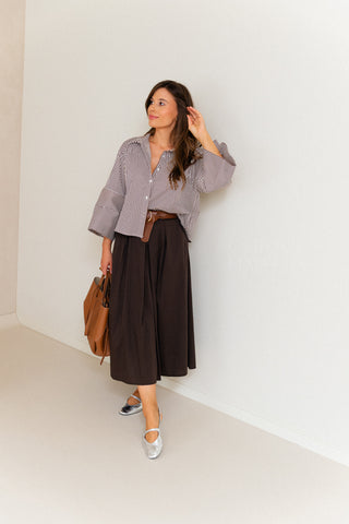 Tijdloze rok met hoge taille en bijpassende ceintuur. Flatterend en zeer veelzijdig te combineren! Zowel chique in combi met een hakje, of stoerder met laarsje of sneakers.