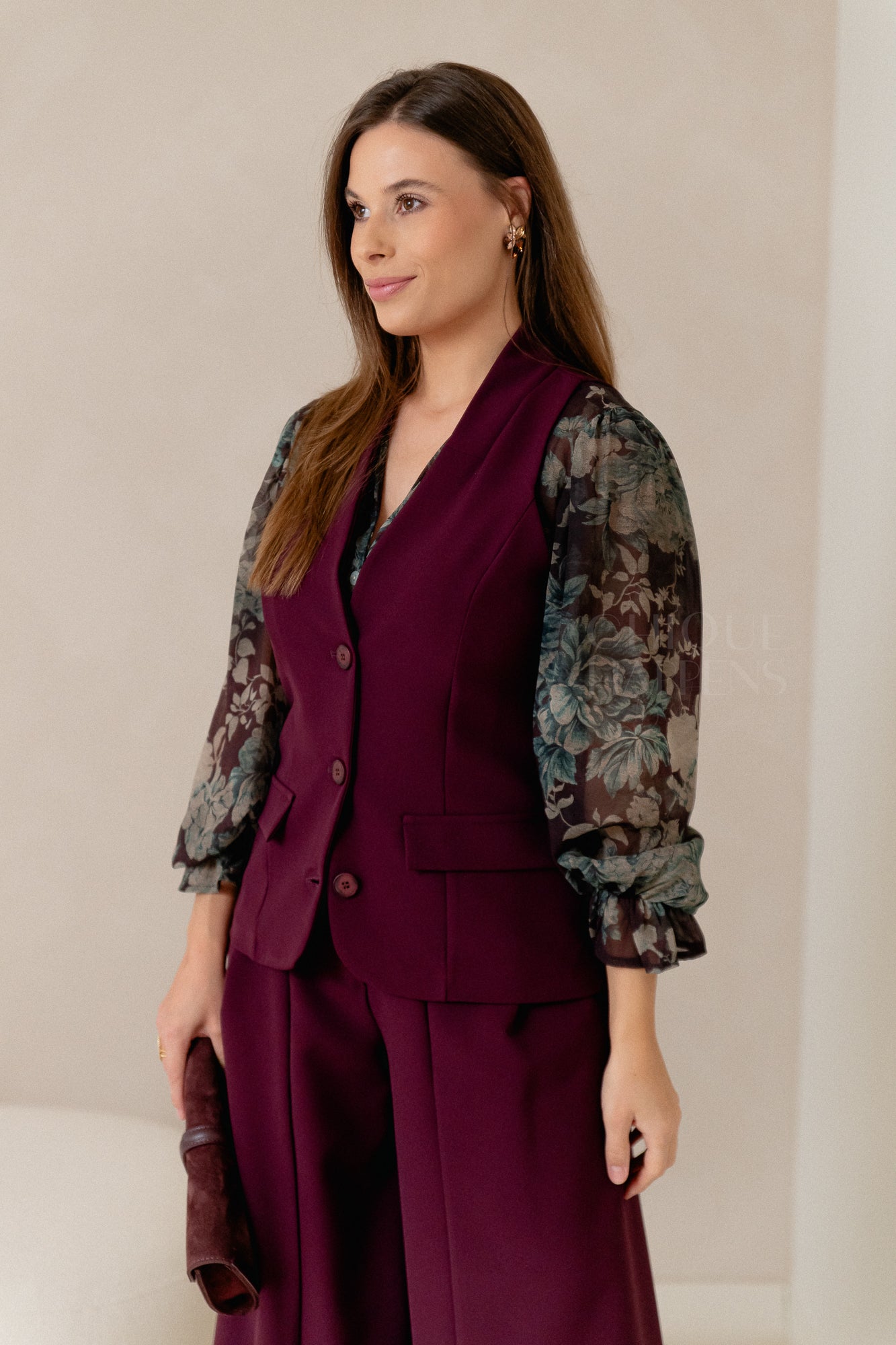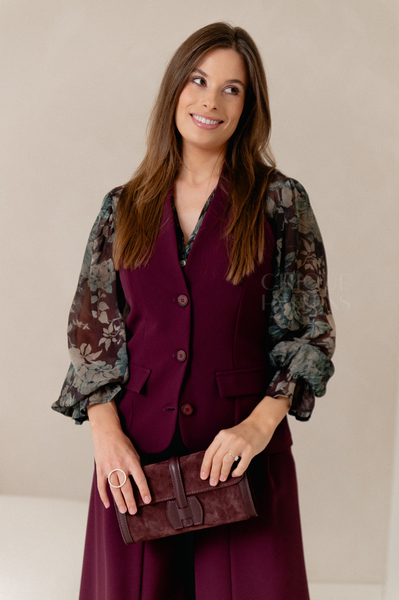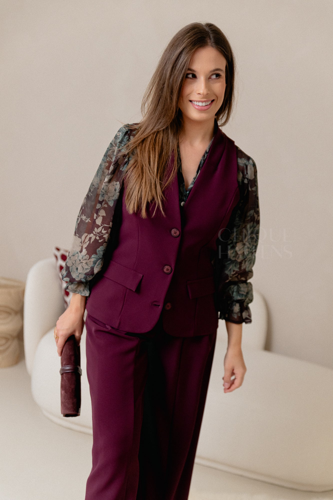 Stijlvolle set van Italiaanse makelij met een wijd uitlopende broek met plooitjes en een bijpassend giletje. De stof voelt superchique aan en heeft een luxe afwerking. Combineer met een blouse of souspulletje voor een moeiteloos geklede look.
