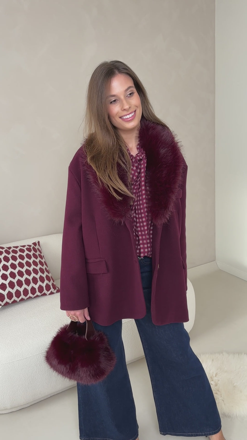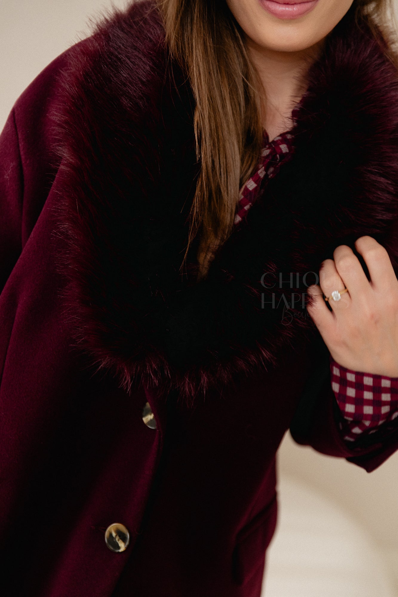 Prachtige en unieke mantel met een afneembare faux fur kraag.