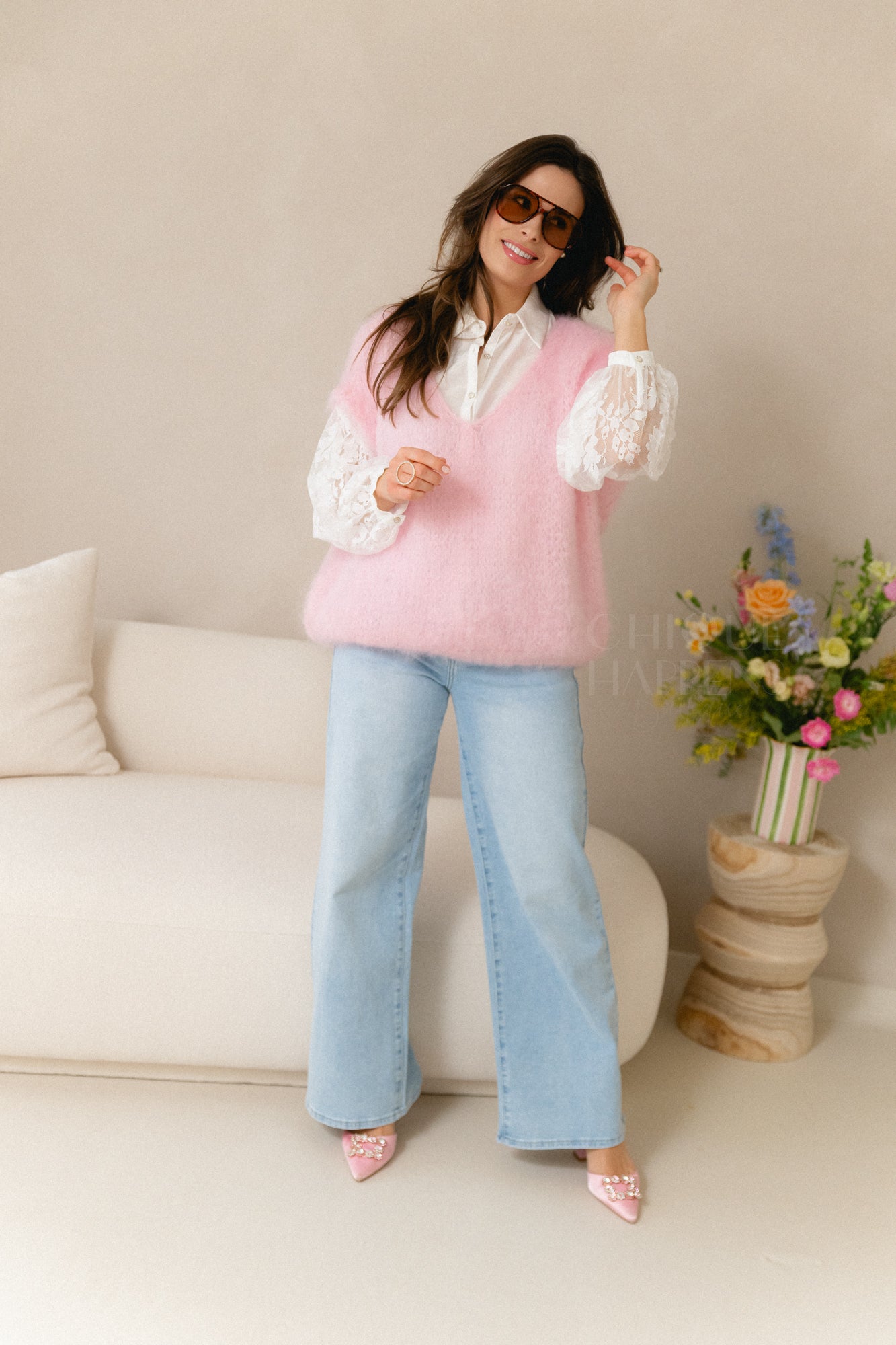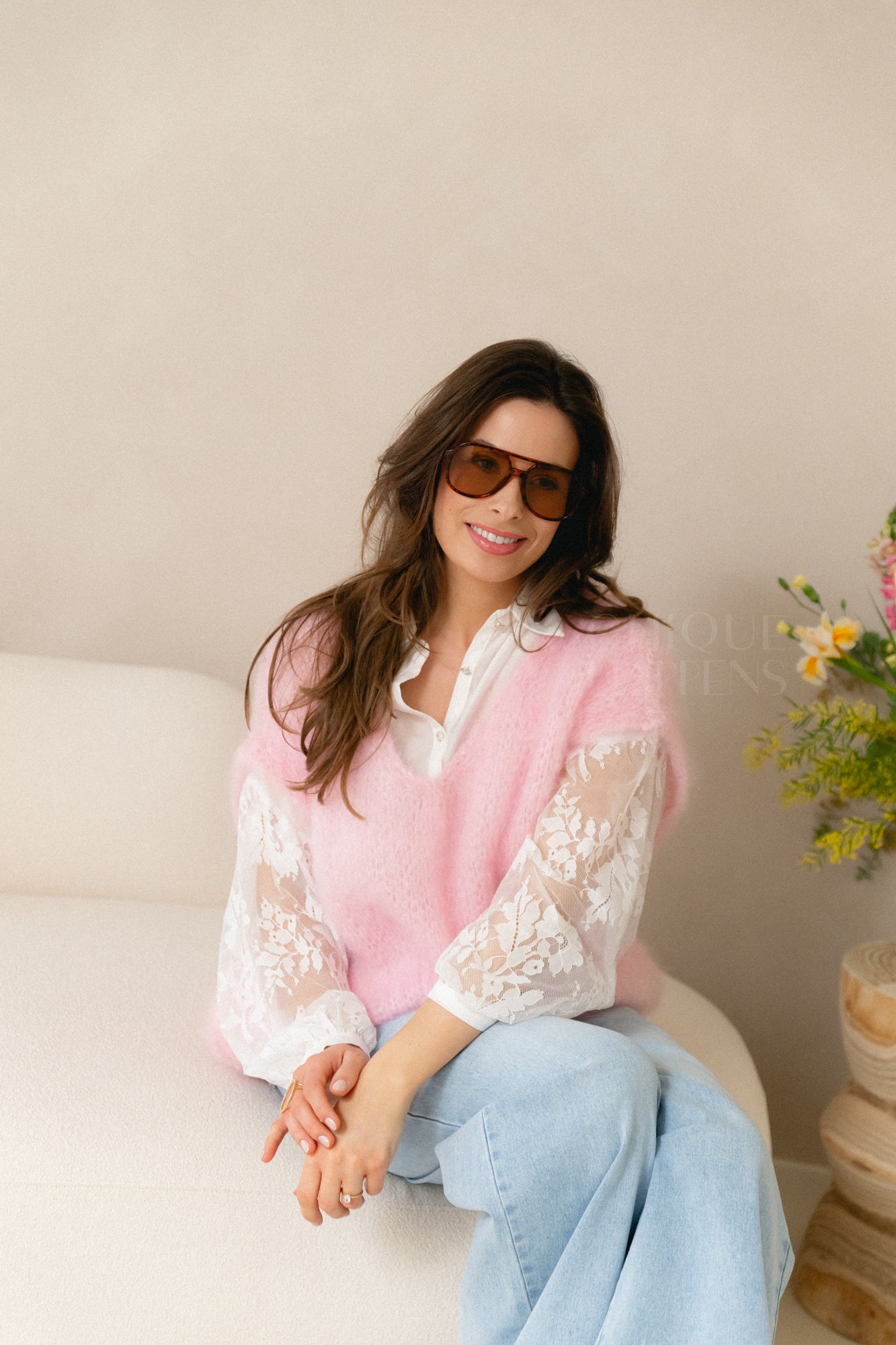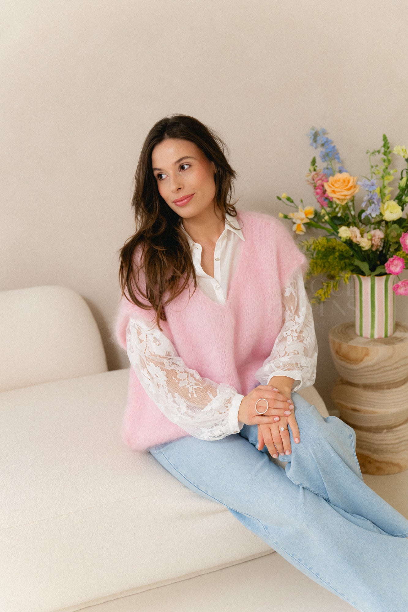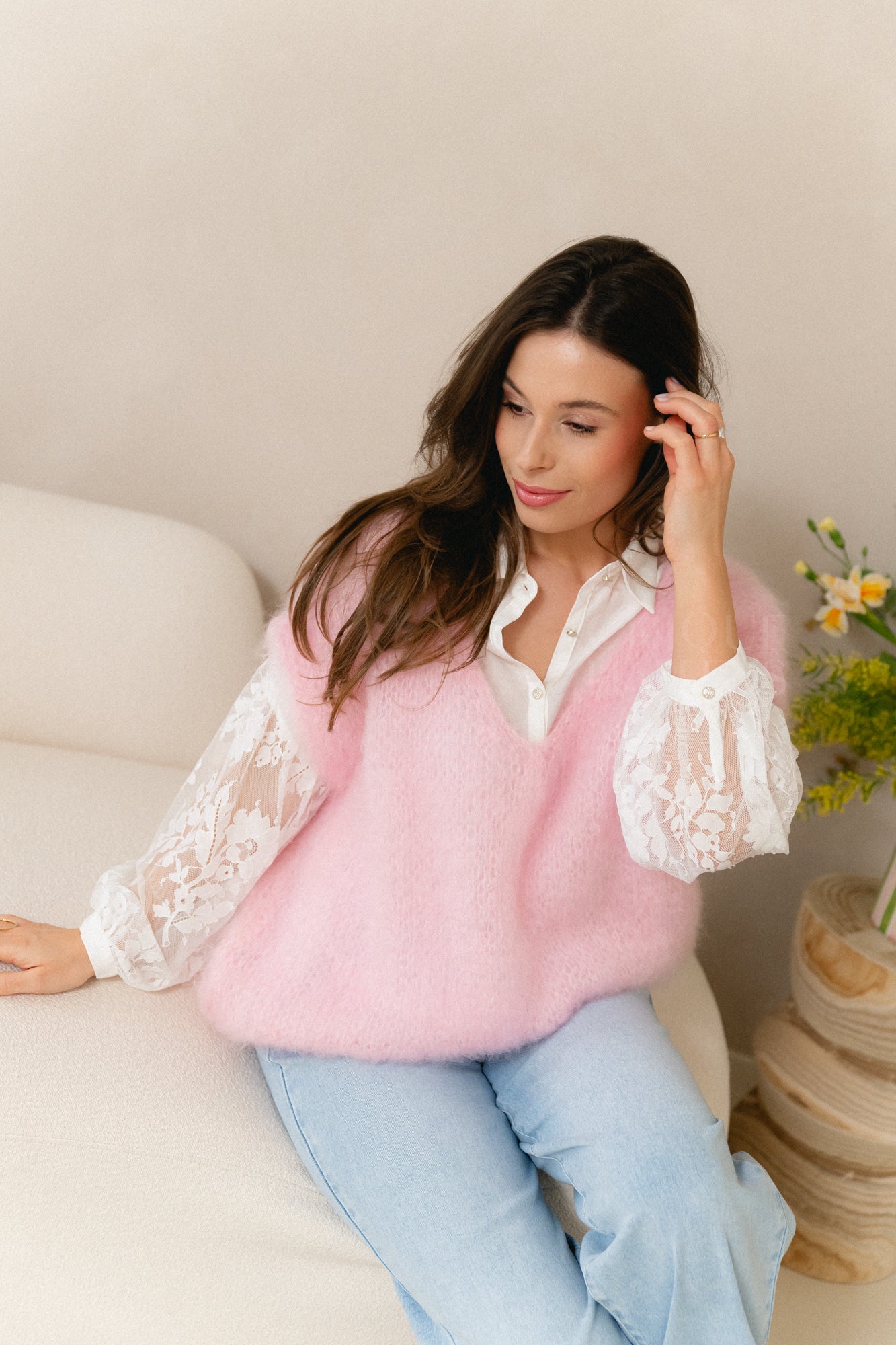 Zachte mohair knit in een frisse pastelroze tint. Licht, warm en heerlijk comfortabel met een elegante, luxe uitstraling. Perfect om je outfit een zachte, vrouwelijke touch te geven.
