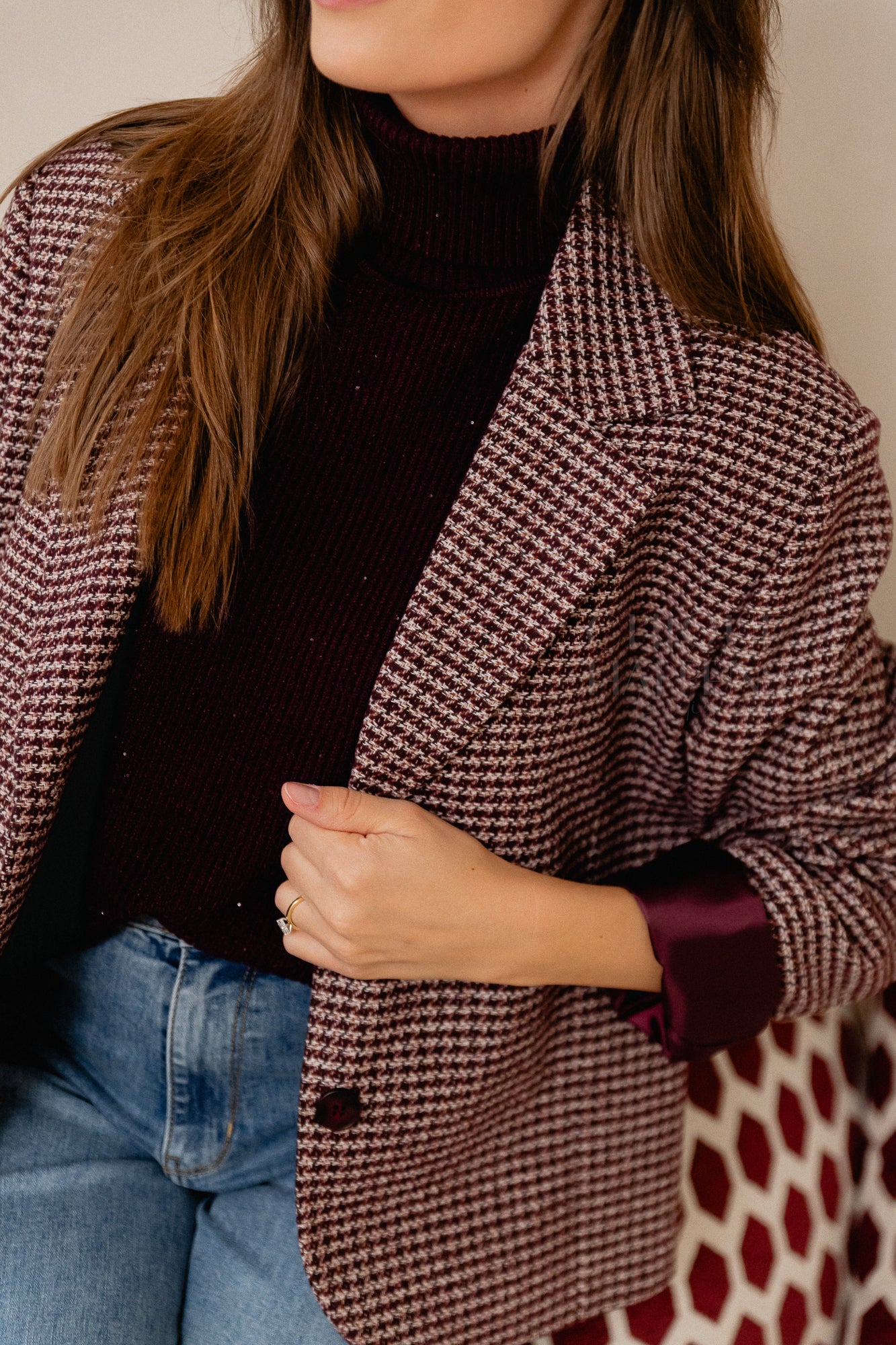 Je kan de blazer met zoveel leuke items combineren zoals een wit hemdje, een tof t-shirt of met de sparkle turtle neck zoals wij hier deden.