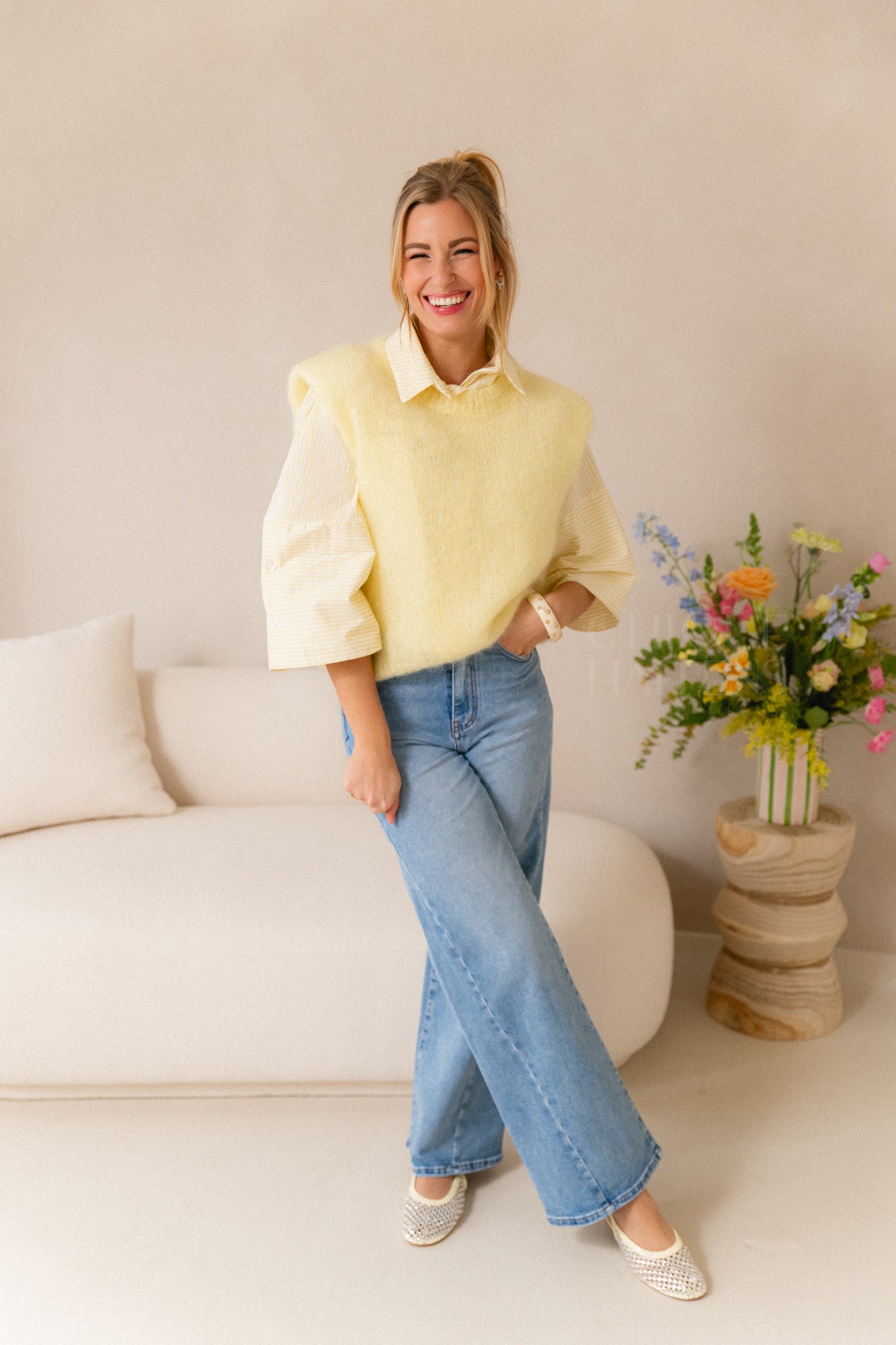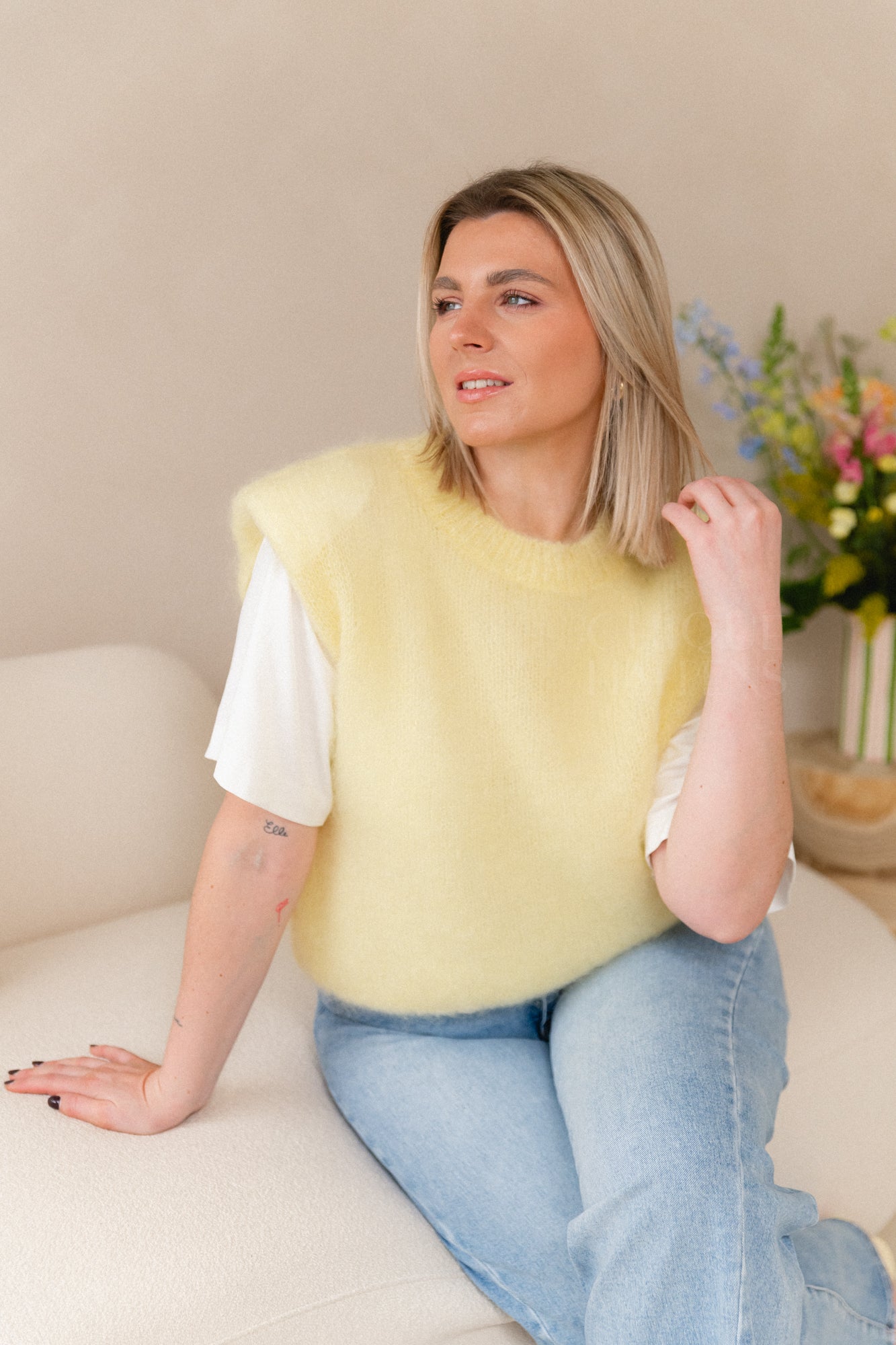 Een mouwloze mohair knit met epauletten in de schouders (eenvoudig uitneembaar). Zacht, licht en perfect te combineren met een hemdje of T-shirt voor een stijlvolle layered look. ✨