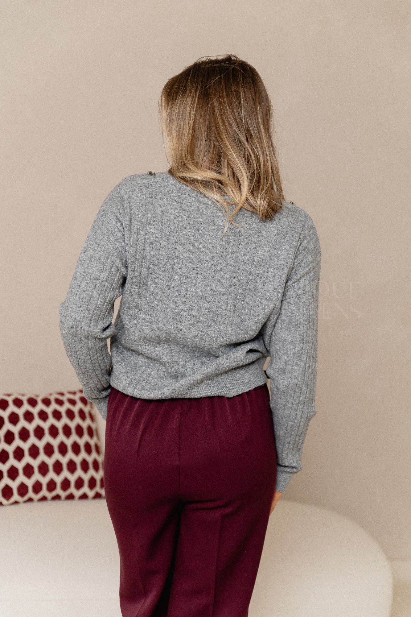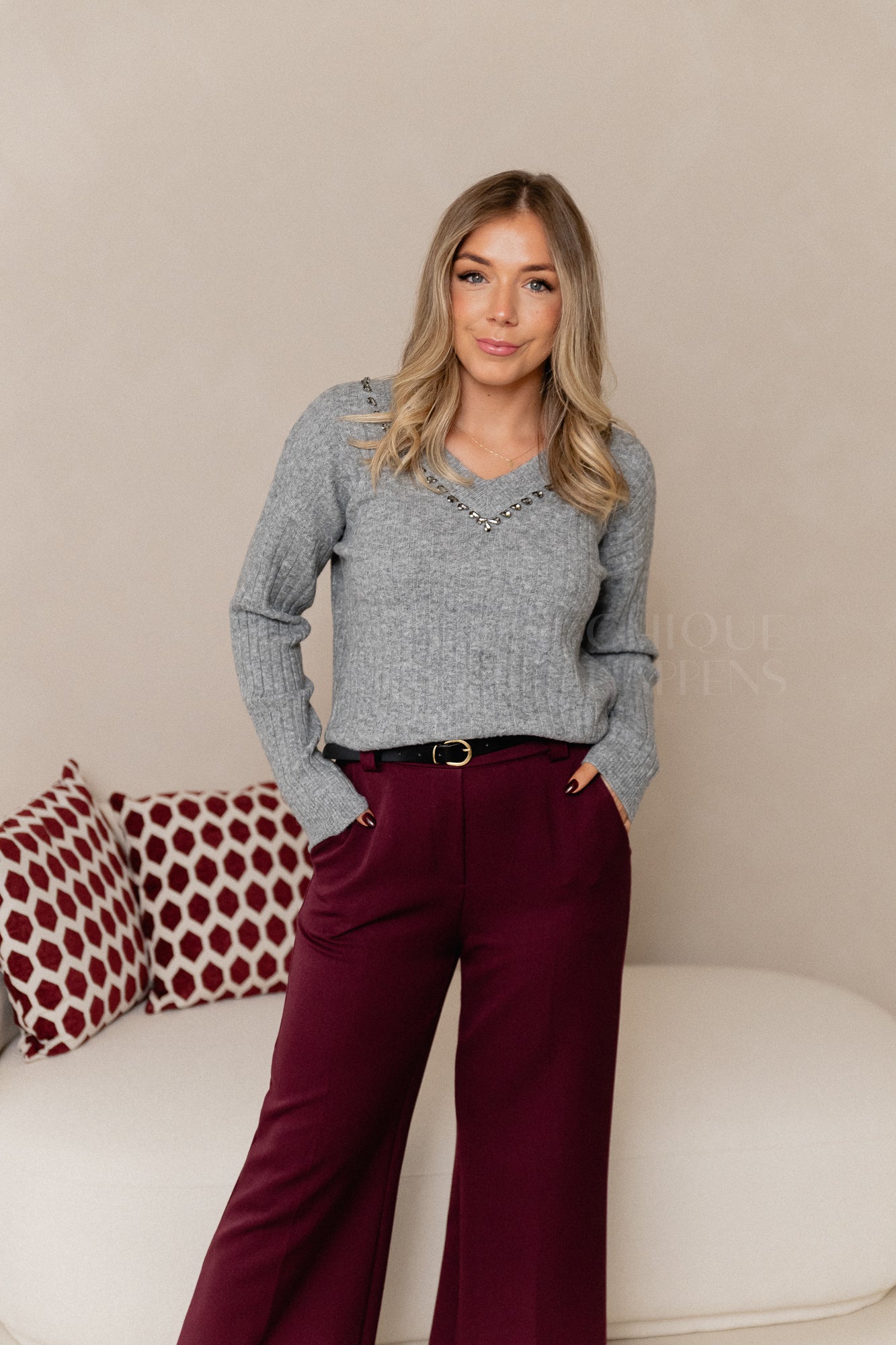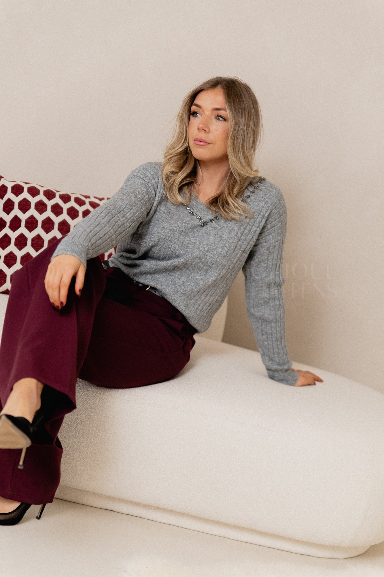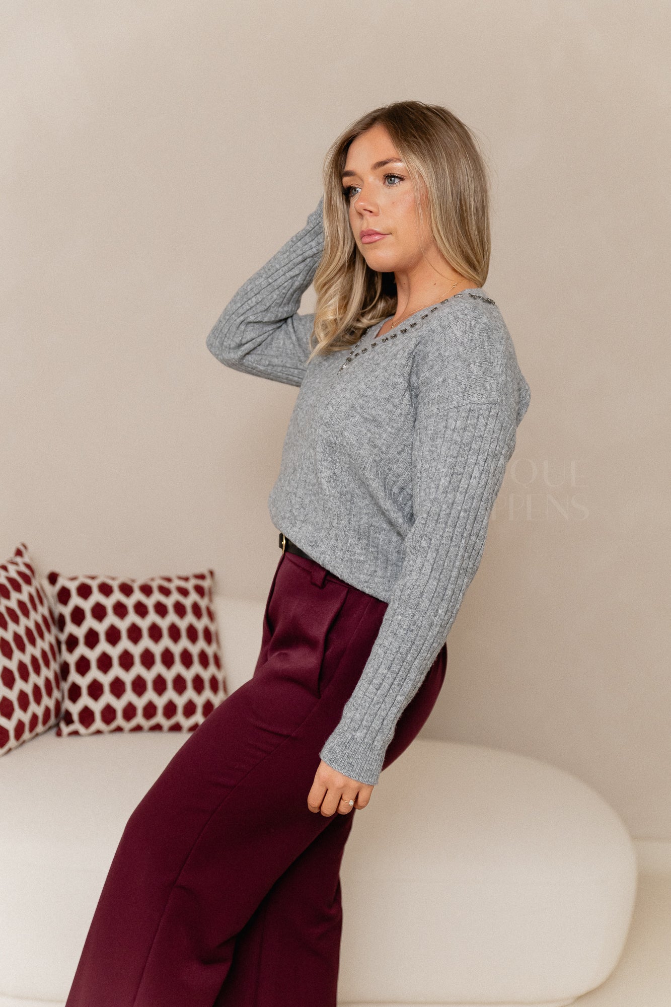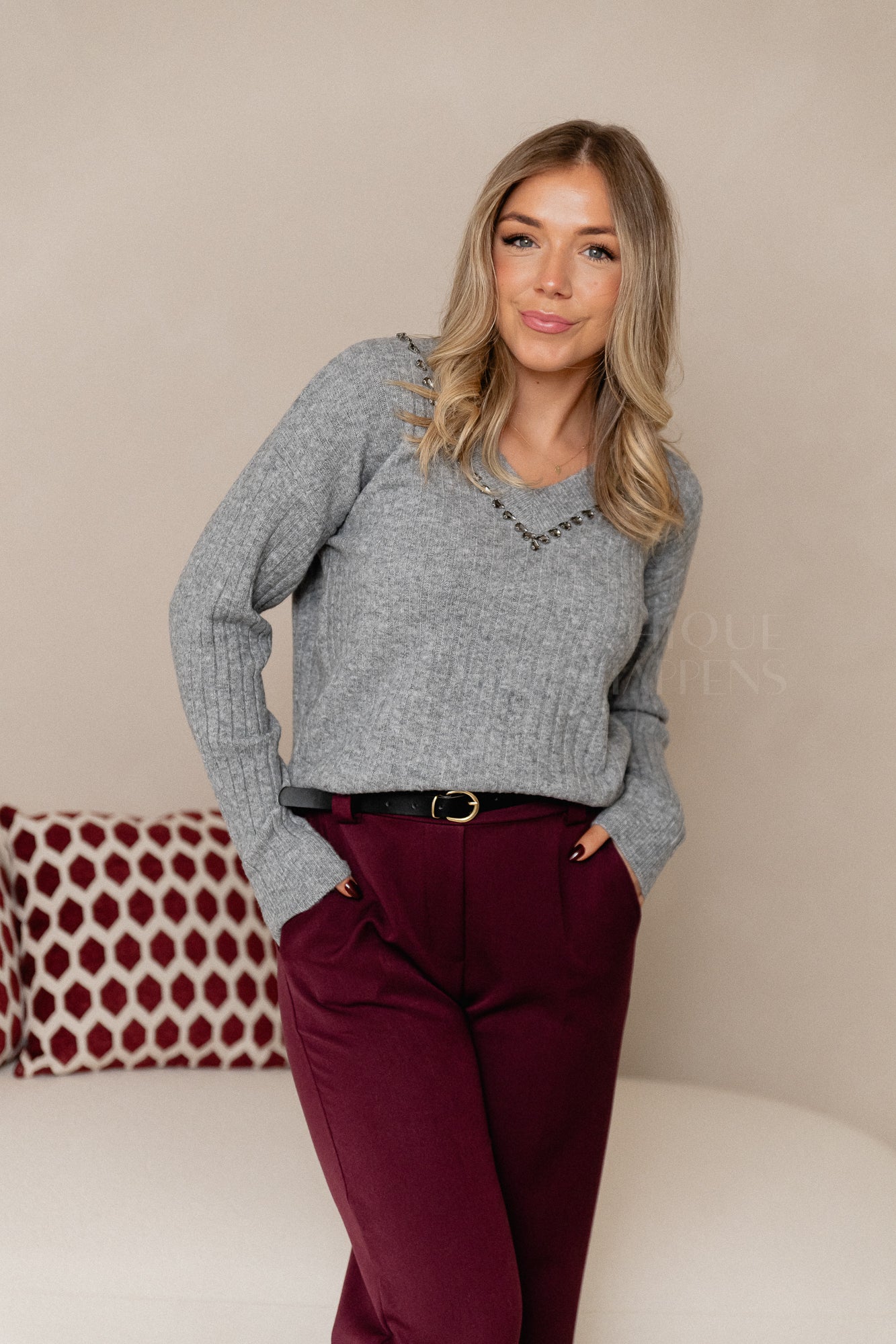 Zacht truitje met steentjes aan de kraag. Elegant en stijlvol, een verfijnde touch voor elke look!
