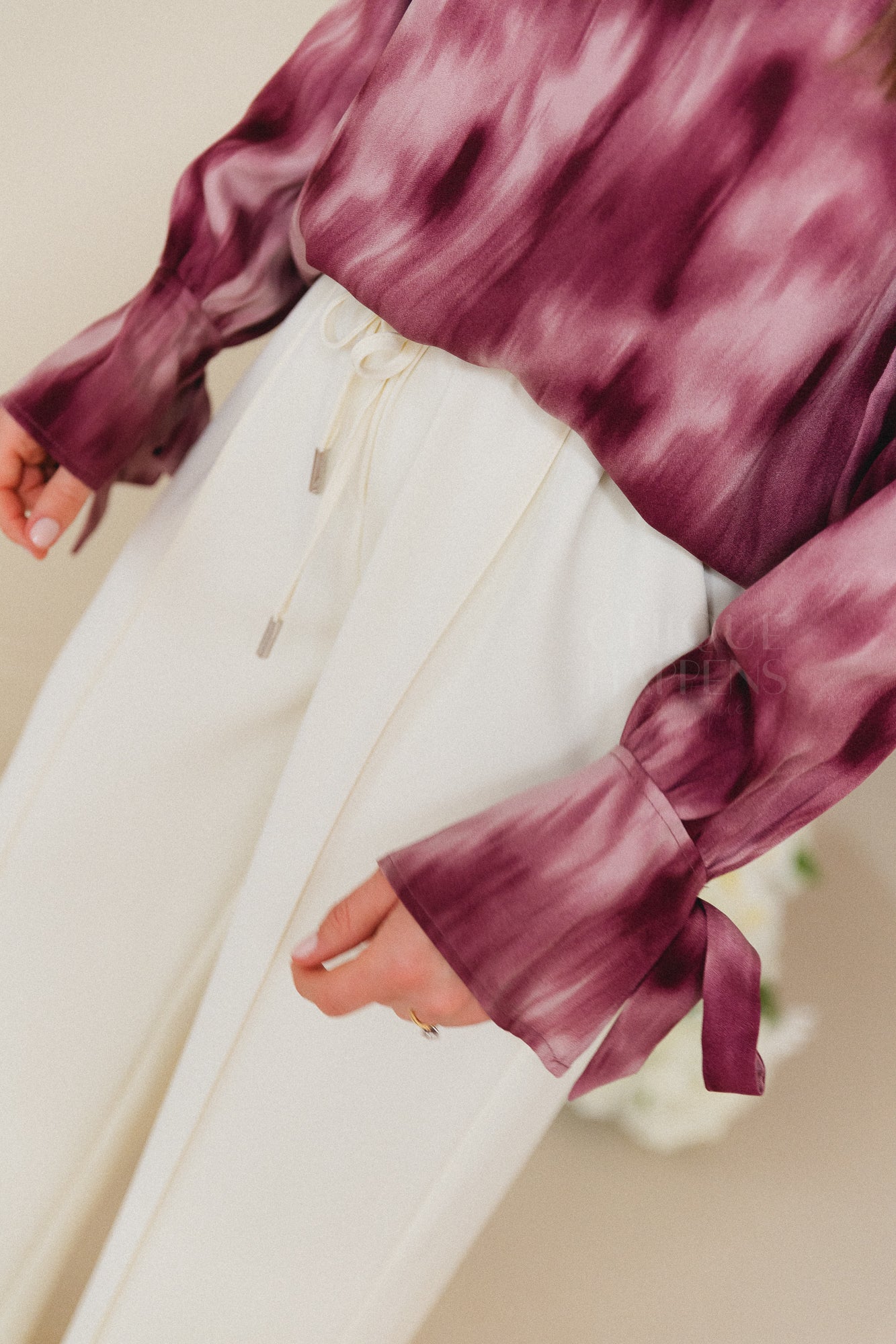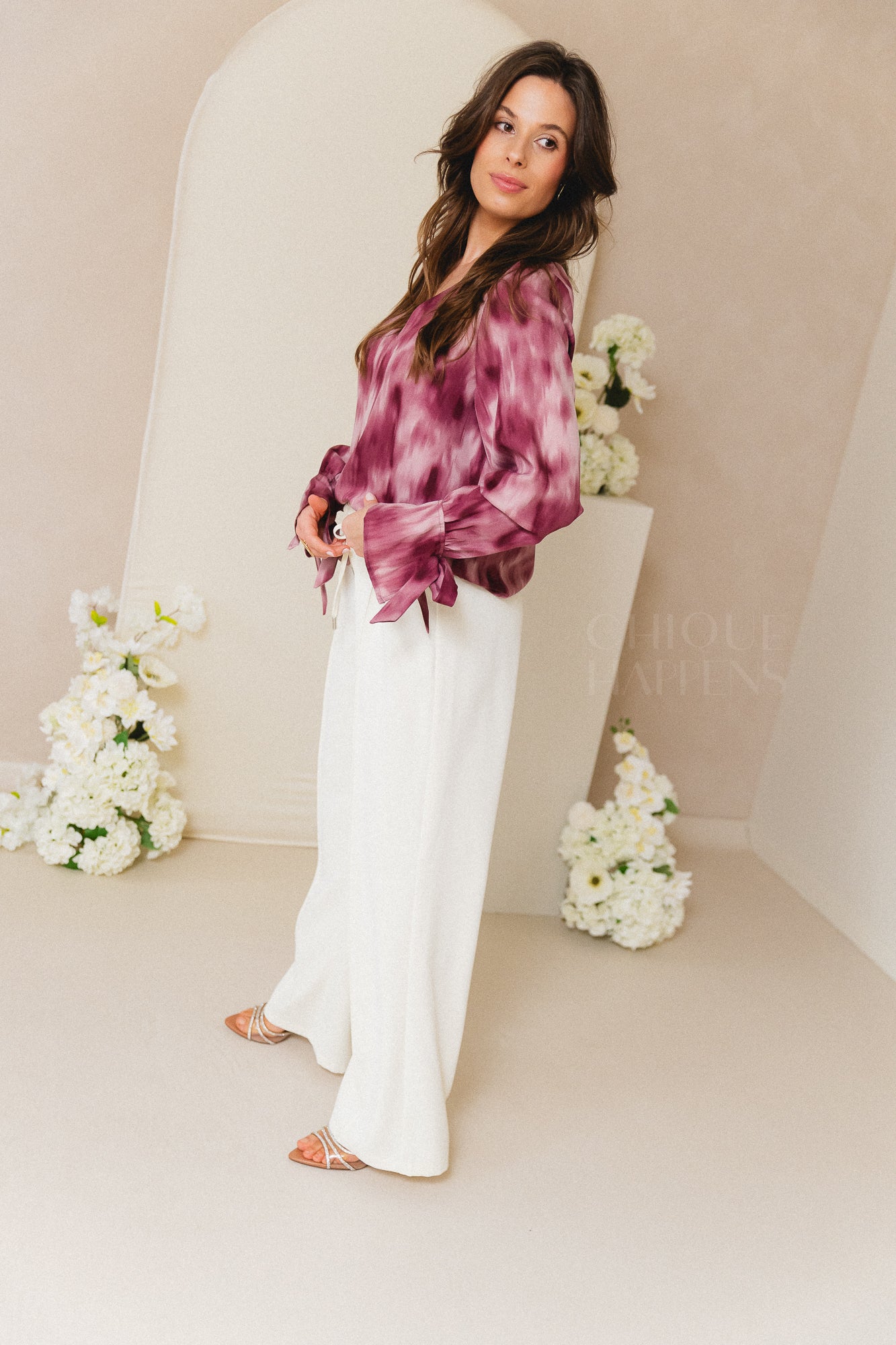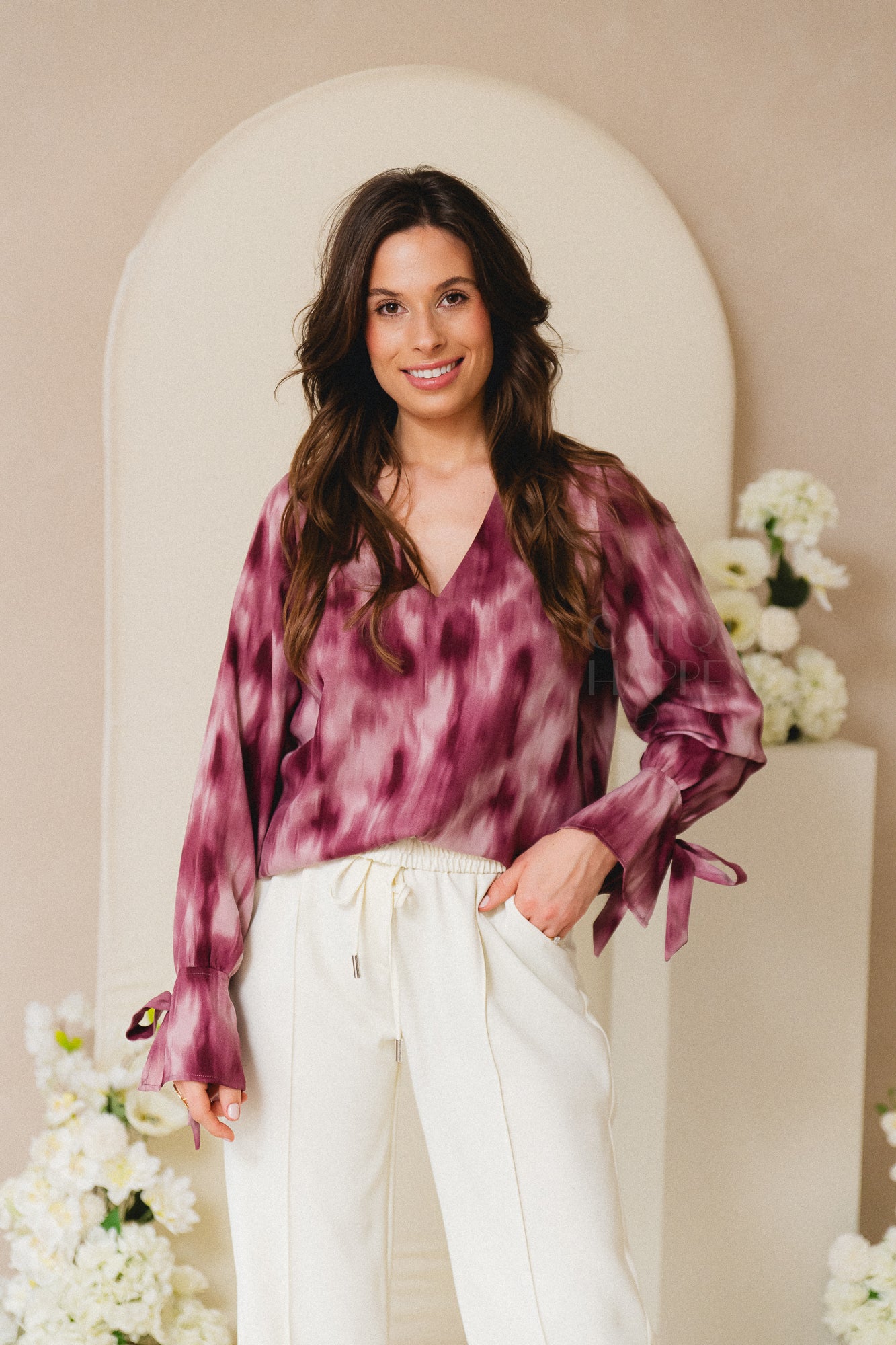Een blouse met print en een losvallende fit. De V-hals geeft een open uitstraling, terwijl de lange mouwen met strikdetail zorgen voor een vrouwelijk accent in je outfit.